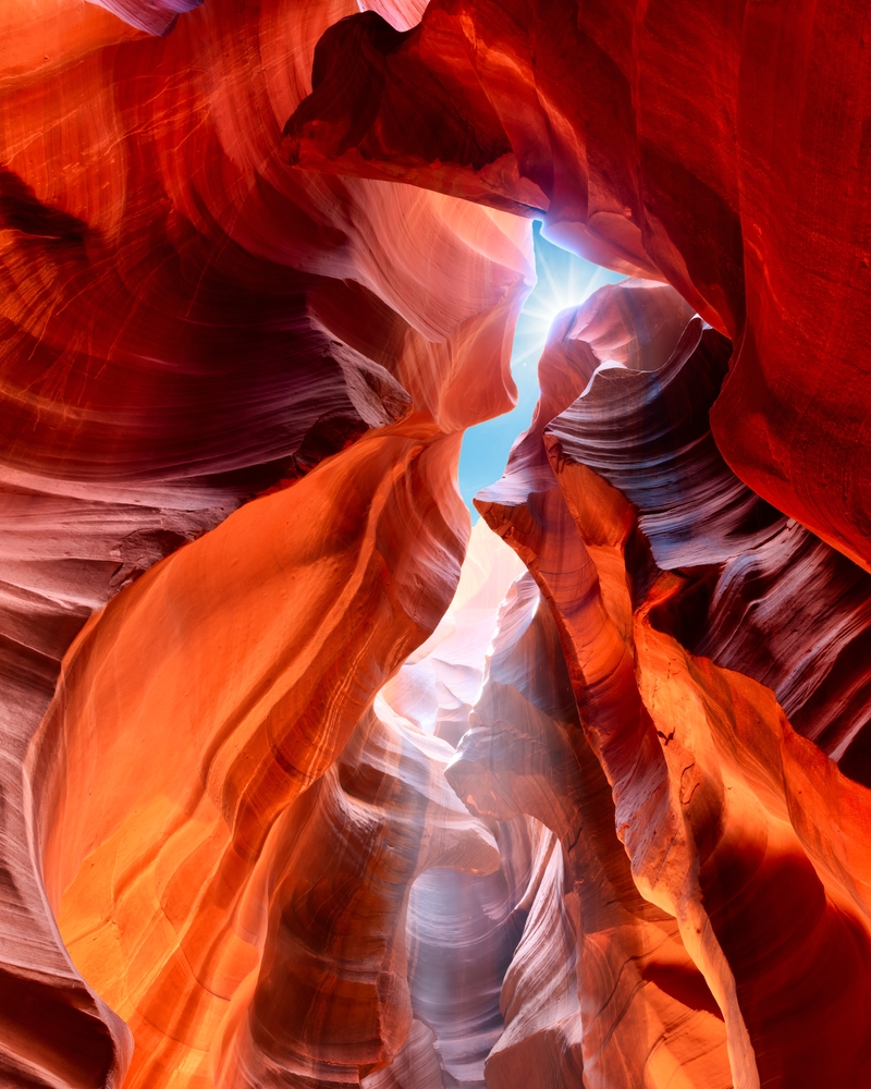 In canyon photography, leading lines such as the curves of the canyon walls or pathways can guide the viewer’s eye through the image. The image above has both of these elements, as well as an eye-catching shaft of light to draw the attention of the viewer deeper into the canyon. Natural frames, like archways or overhanging rocks, can also draw attention to the main subject and add depth.